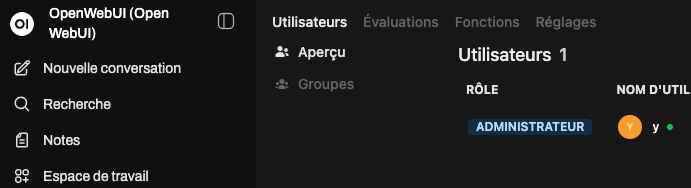 Je vous laisserai créer un compte dans Open WebUI, il n’y a rien de particulier à signaler là dessus.
